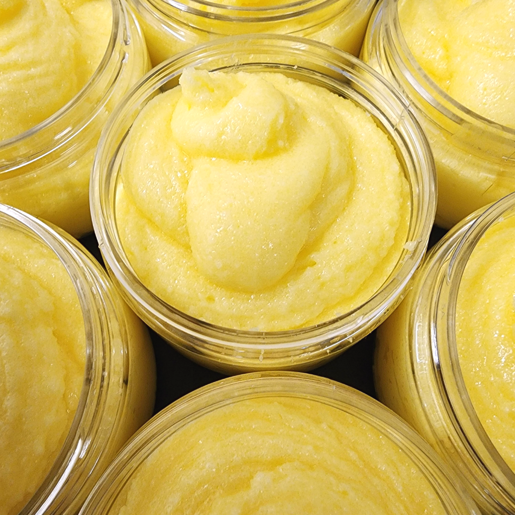 Sugar Scrub: Sugar, Safflower Seed Oil, Polysorbate 80, Rice Bran Extract, Rosemary Leaf Extract, Sunflower Extract, Tocopherol, Preservative.